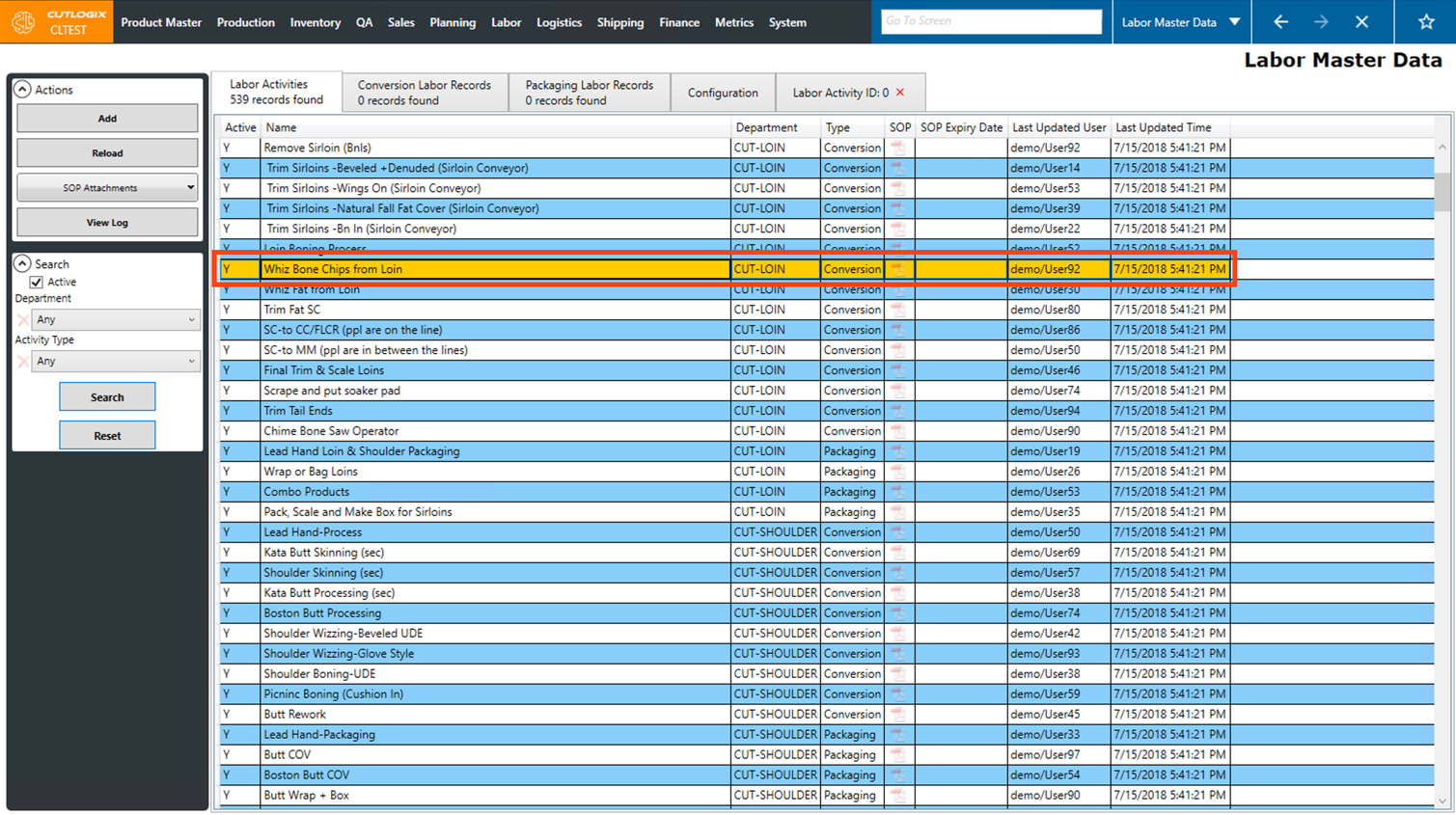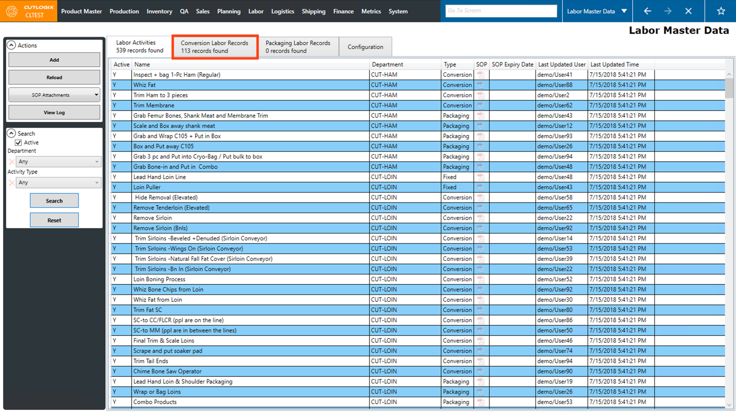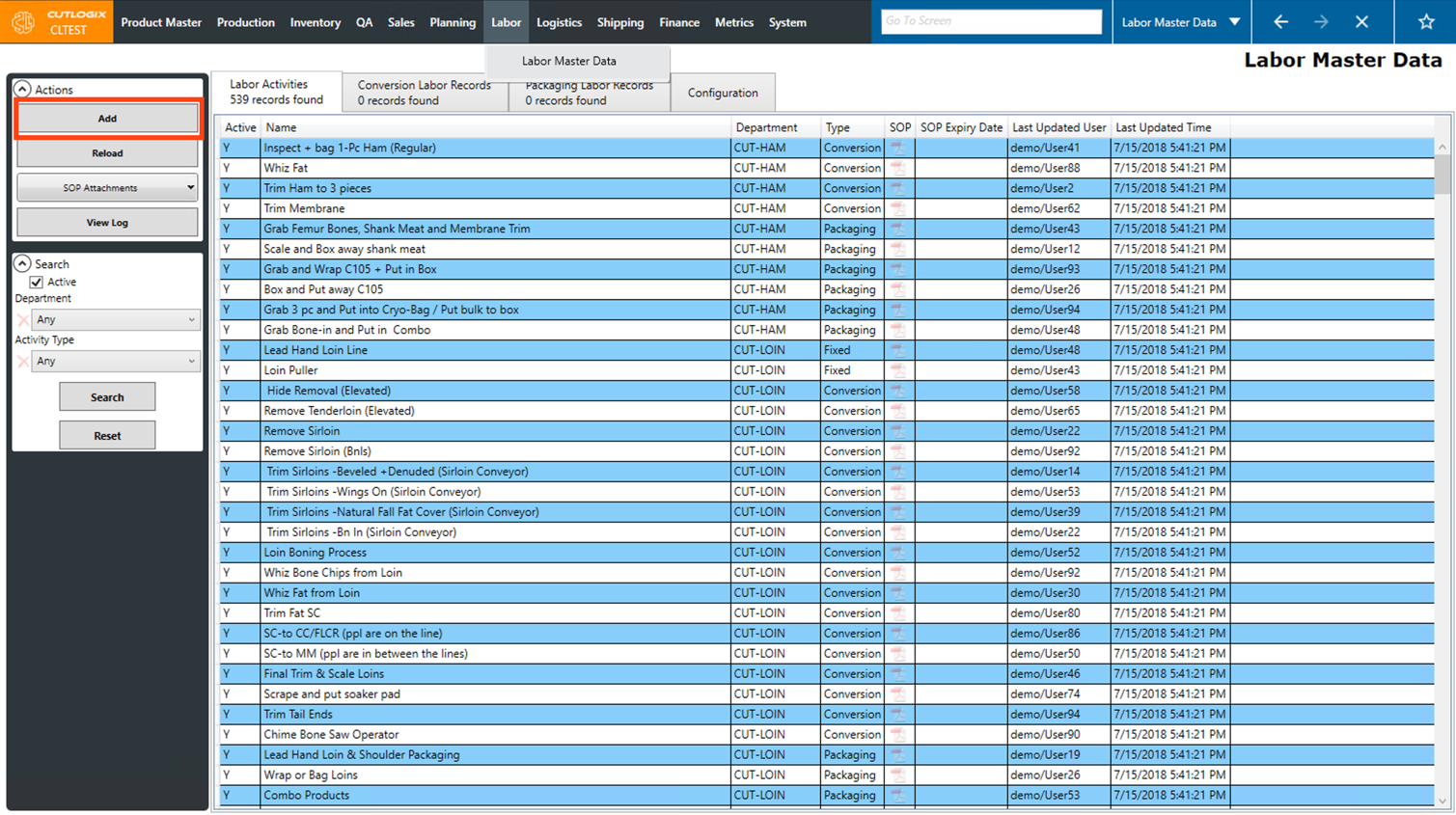 DemoStep 1: Navigate to the "Labor Master Data" page (Under the Labor menu → Labor Master Data).