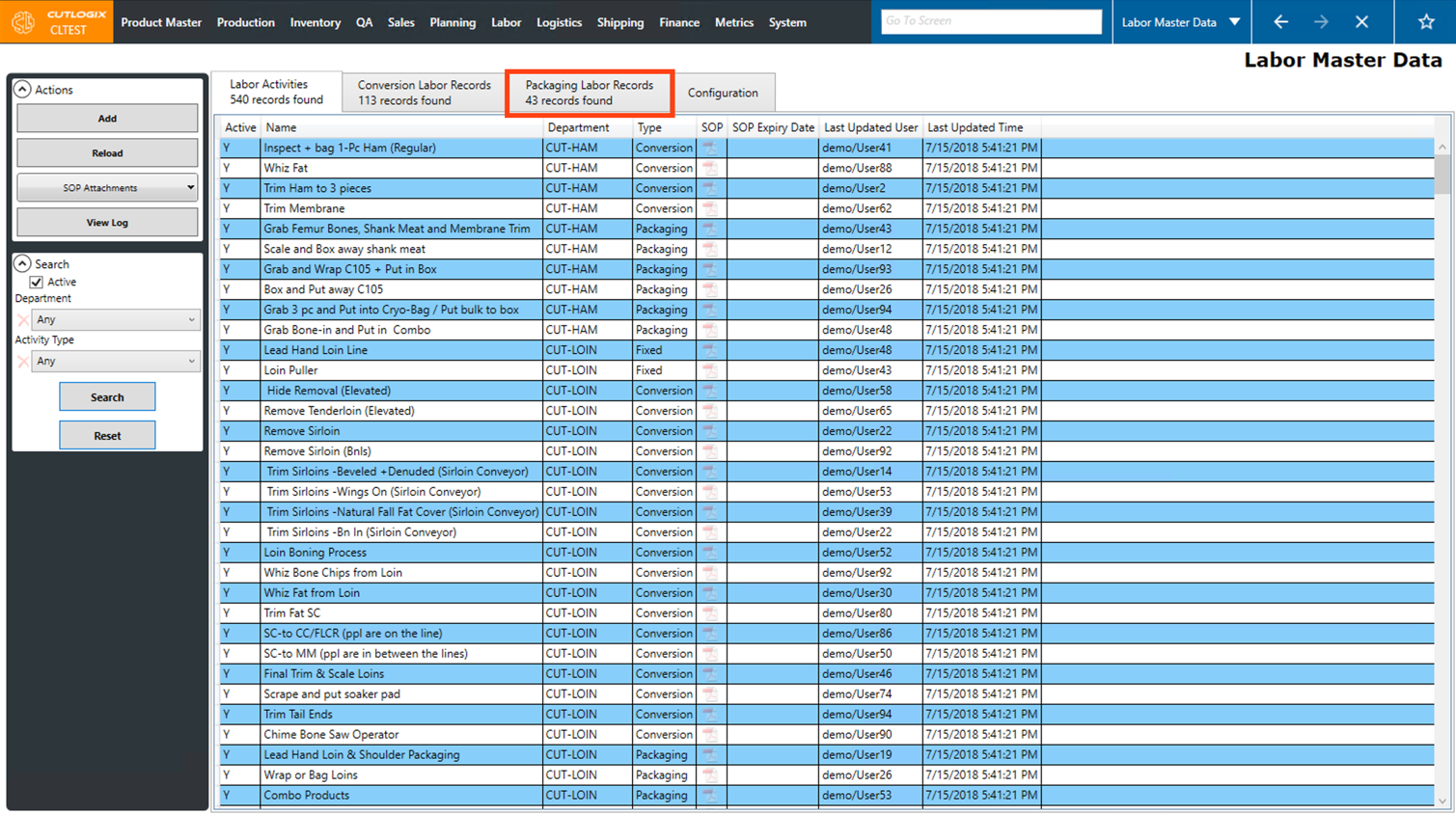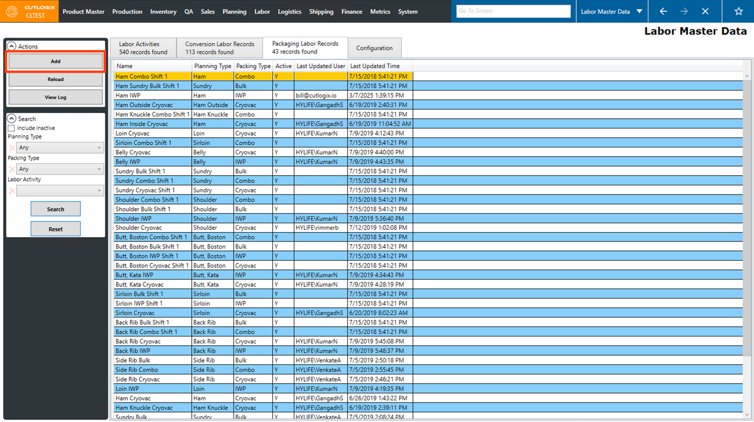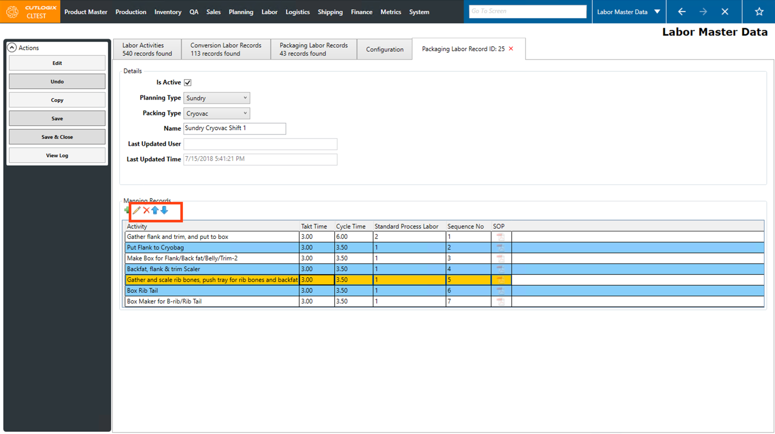 Step 2: Go to the "Packaging Labor Records" tab and double-click on the packaging labor record that you want to edit.