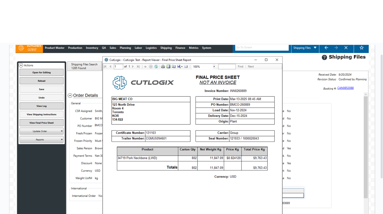 Demo Final price sheets are used to declare the value of an order for export purposes, as opposed to requiring that an order be invoiced before it can be shipped. This can help prevent shipping delays by enabling orders to leave the plant before being officially invoiced.