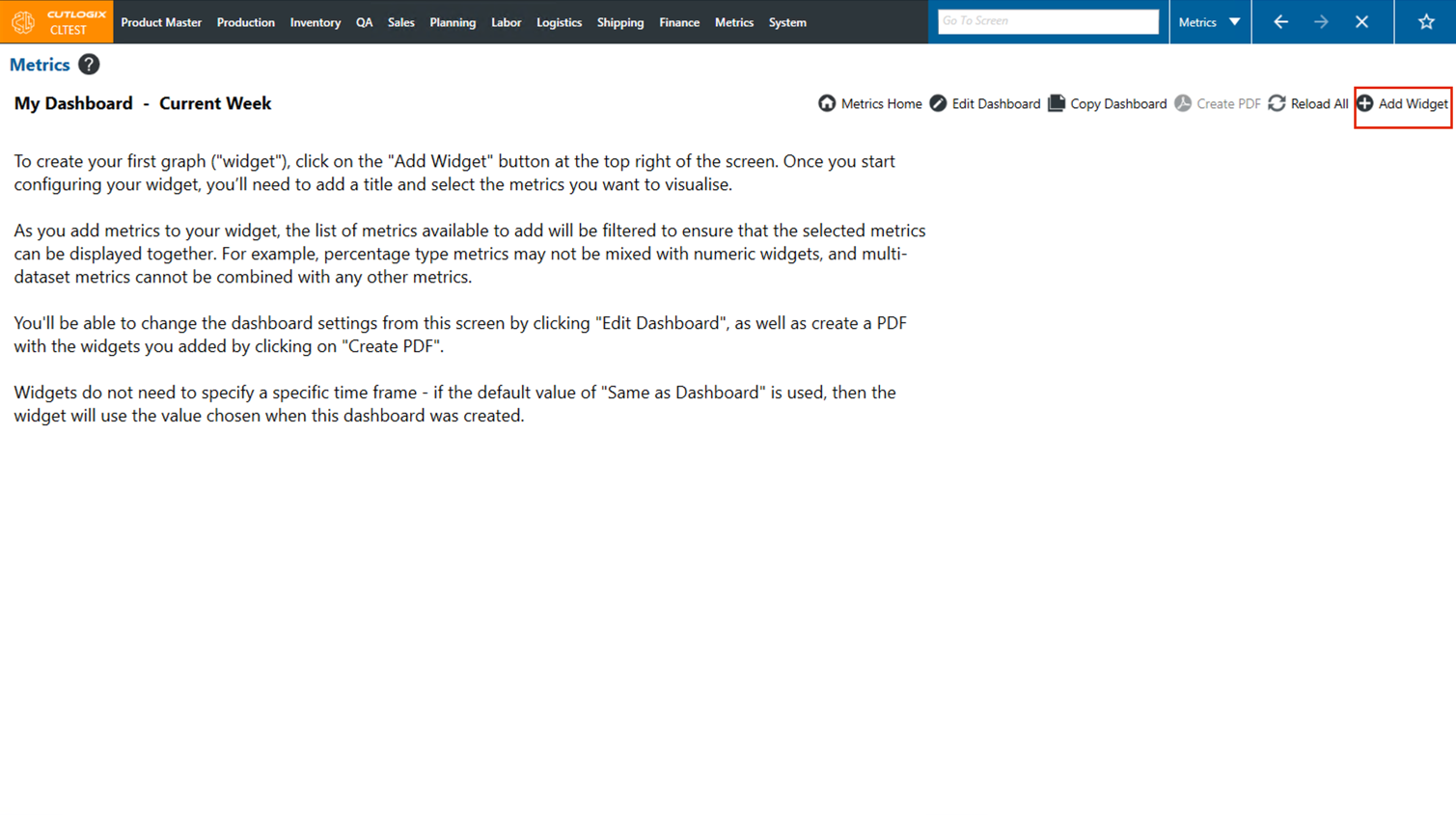 Step 2: Click the "Add Widget" button in the top right corner of the page.