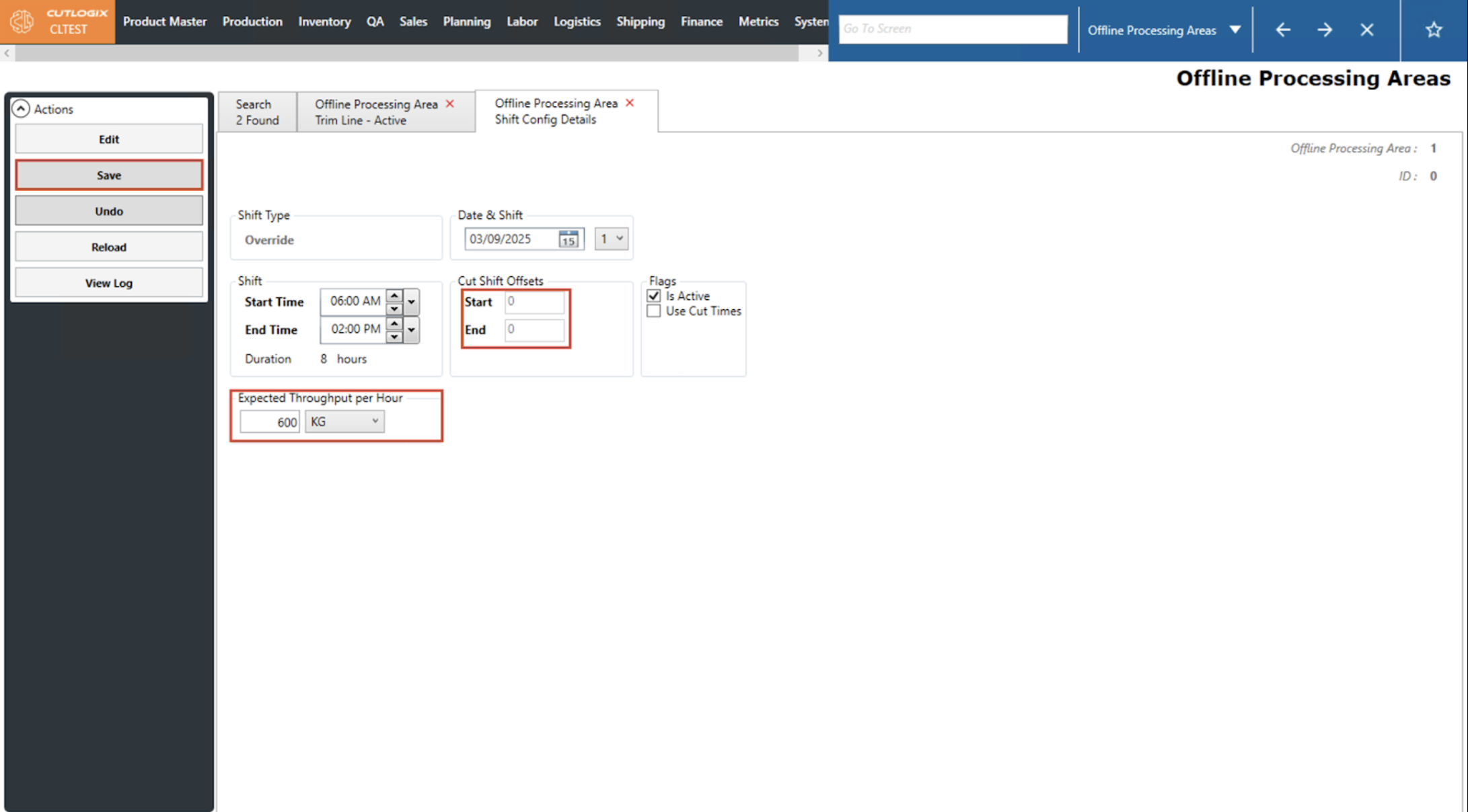 How to Edit a Shift Configuration on an Offline Processing Area