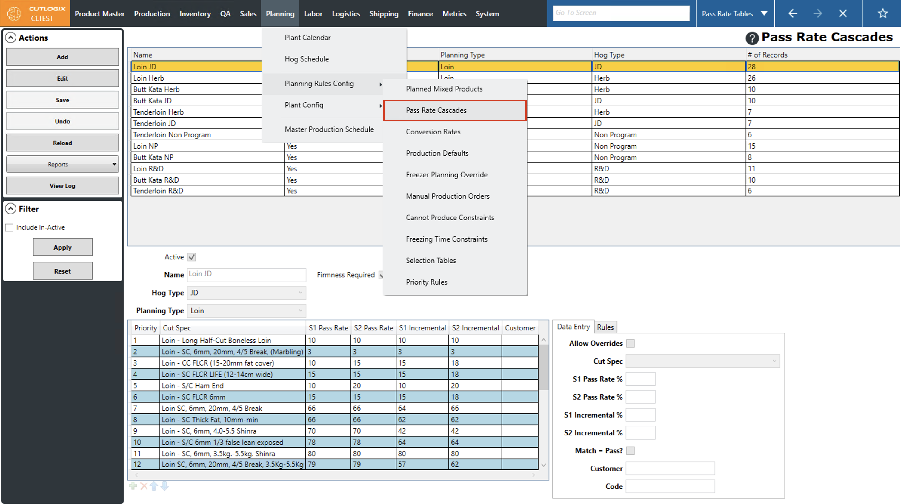 DemoStep 1: Navigate to the "Pass Rates Cascades" page (Under the Planning menu → Planning Rules Config → Pass Rate Cascades)
