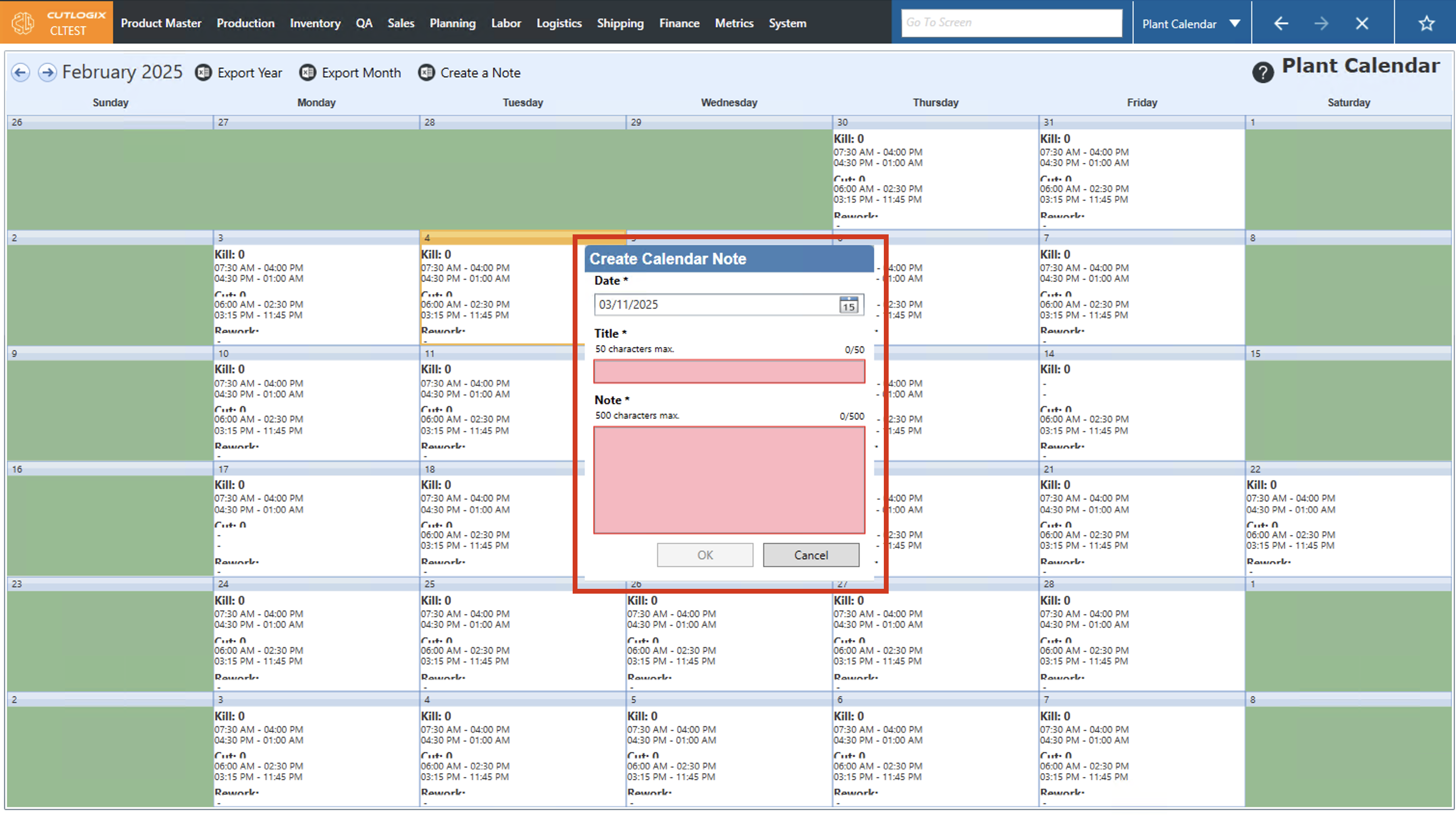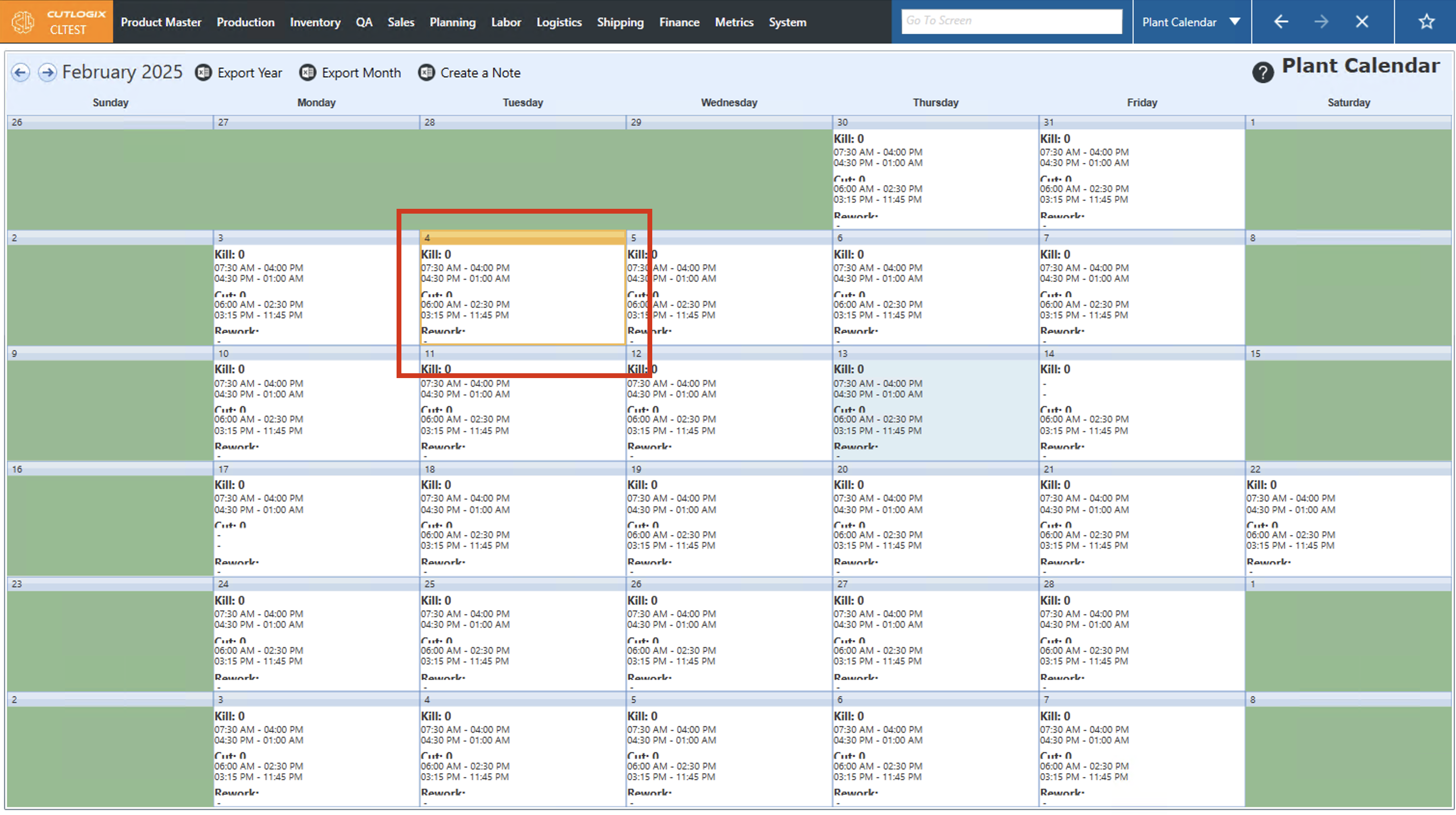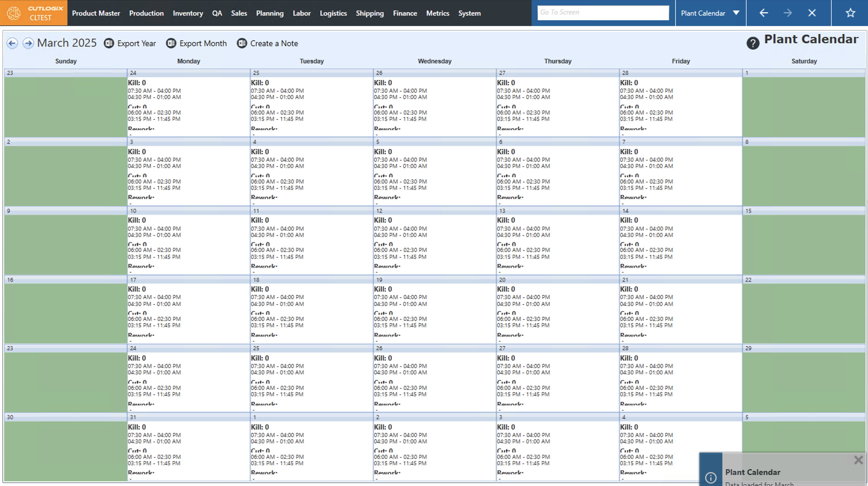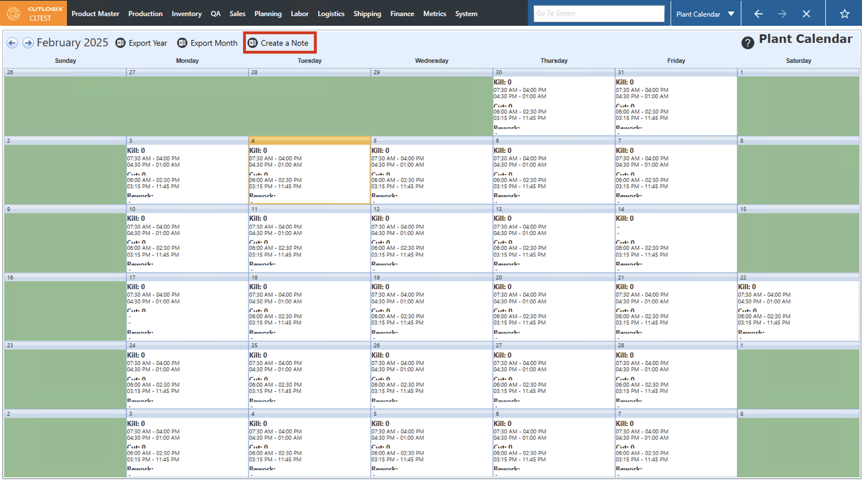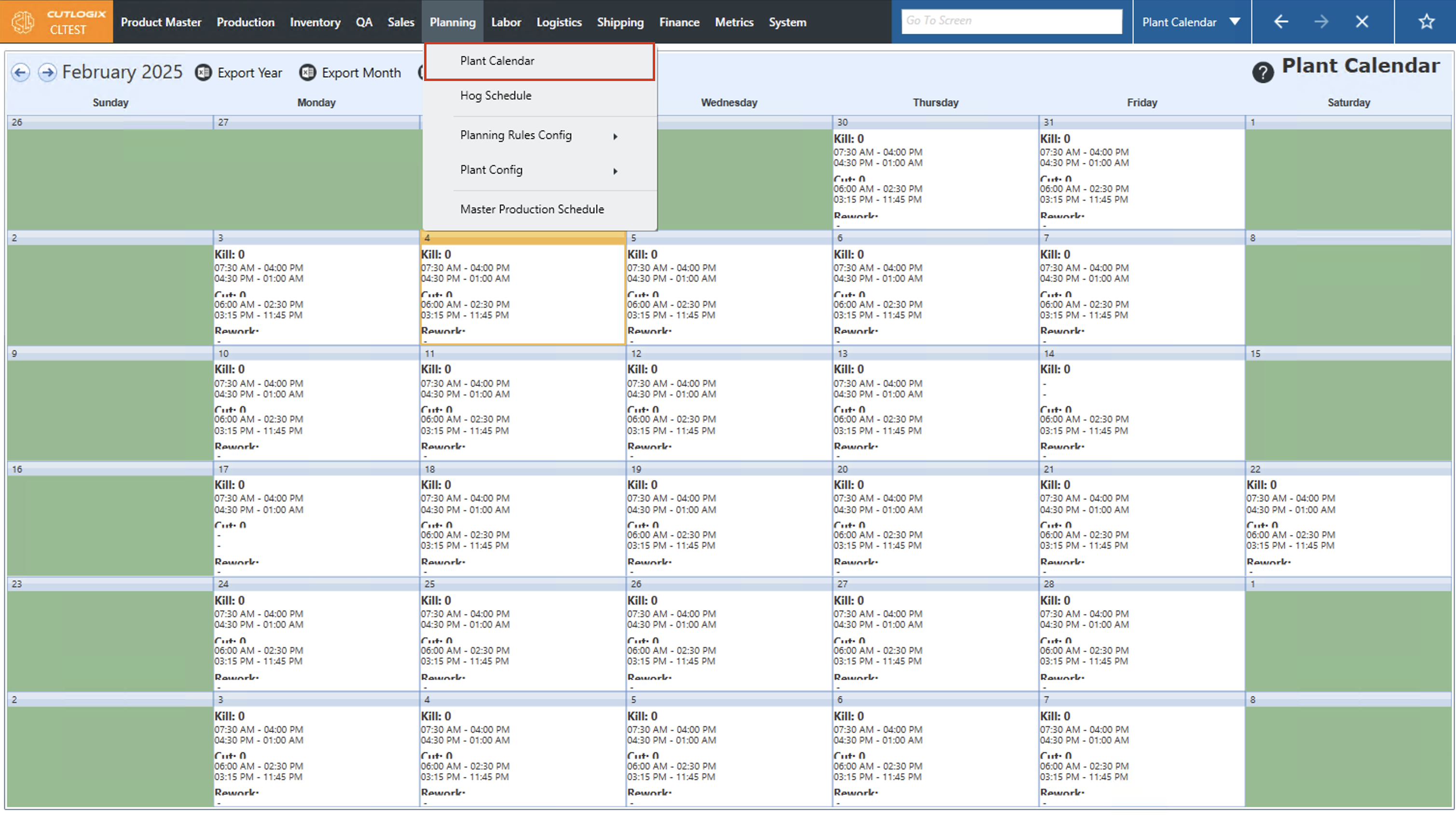 DemoStep 1: Navigate to the "Plant Calendar" page (Under the Planning menu → Plant Calendar).