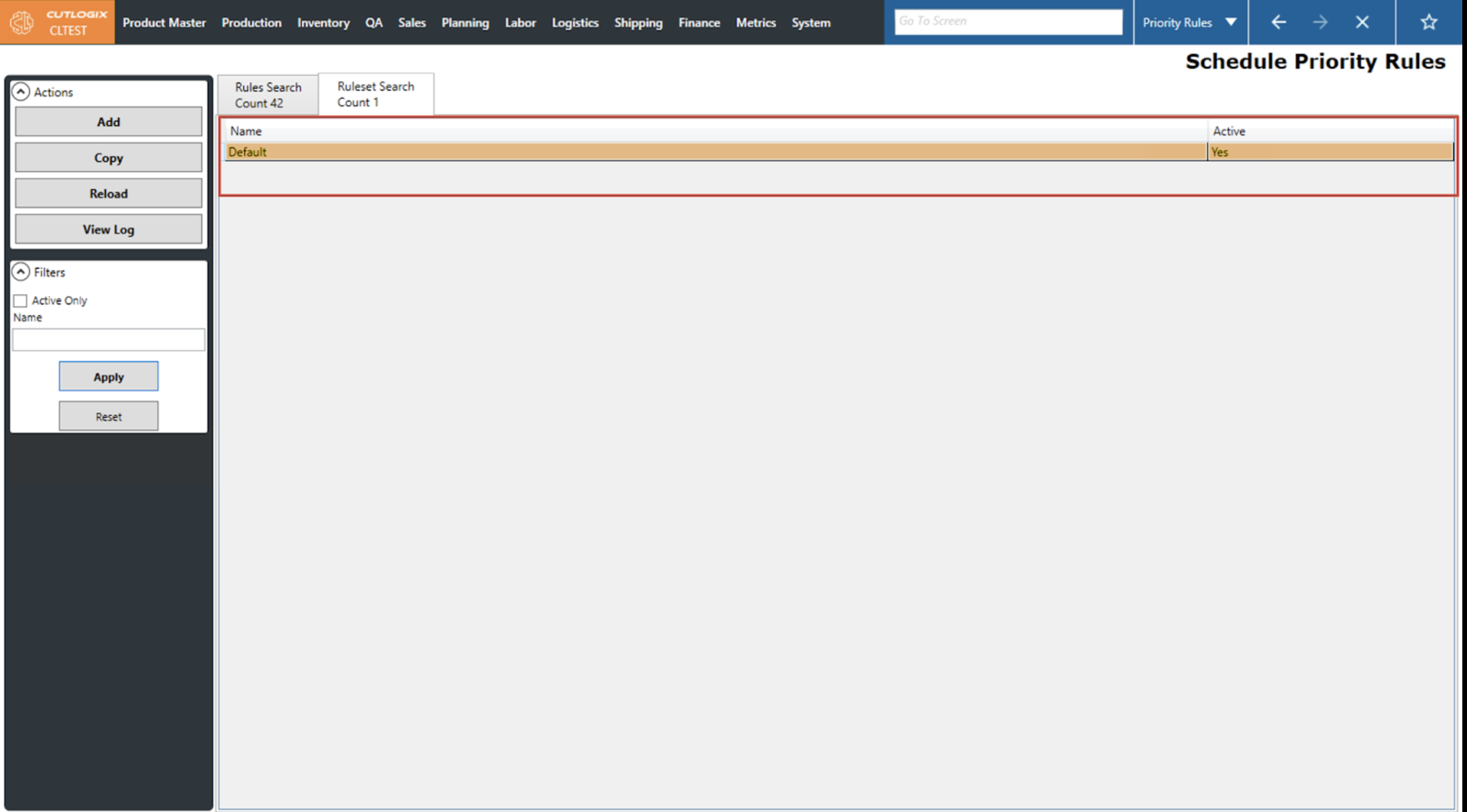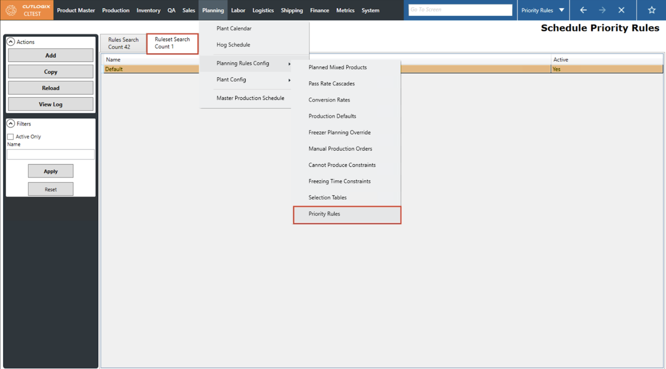 DemoStep 1: Navigate to Planning > Planning Rules Config > Priority Rules screen and select the Ruleset Search tab.