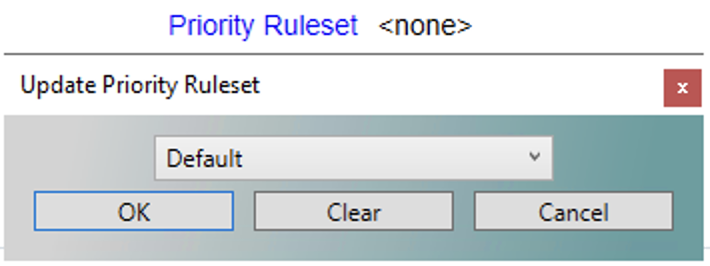 Once a ruleset has been created, users can assign it to a schedule in the MPS on the config tab. If the 'none' option is selected then the system will default to a set of hardcoded rules. Clicking the hyperlinked text will allow users to select a defined ruleset from the dropdown and click ok to apply it to the selected schedule.