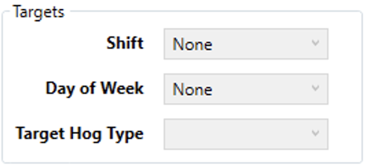 - Target Hog Type - Defines the specific type, or grade, of hog the rule should apply to. Hog types/grades refer to the type of breeding program and diet the hogs underwent. Typically, the more stringent the program the more expensive the hog.