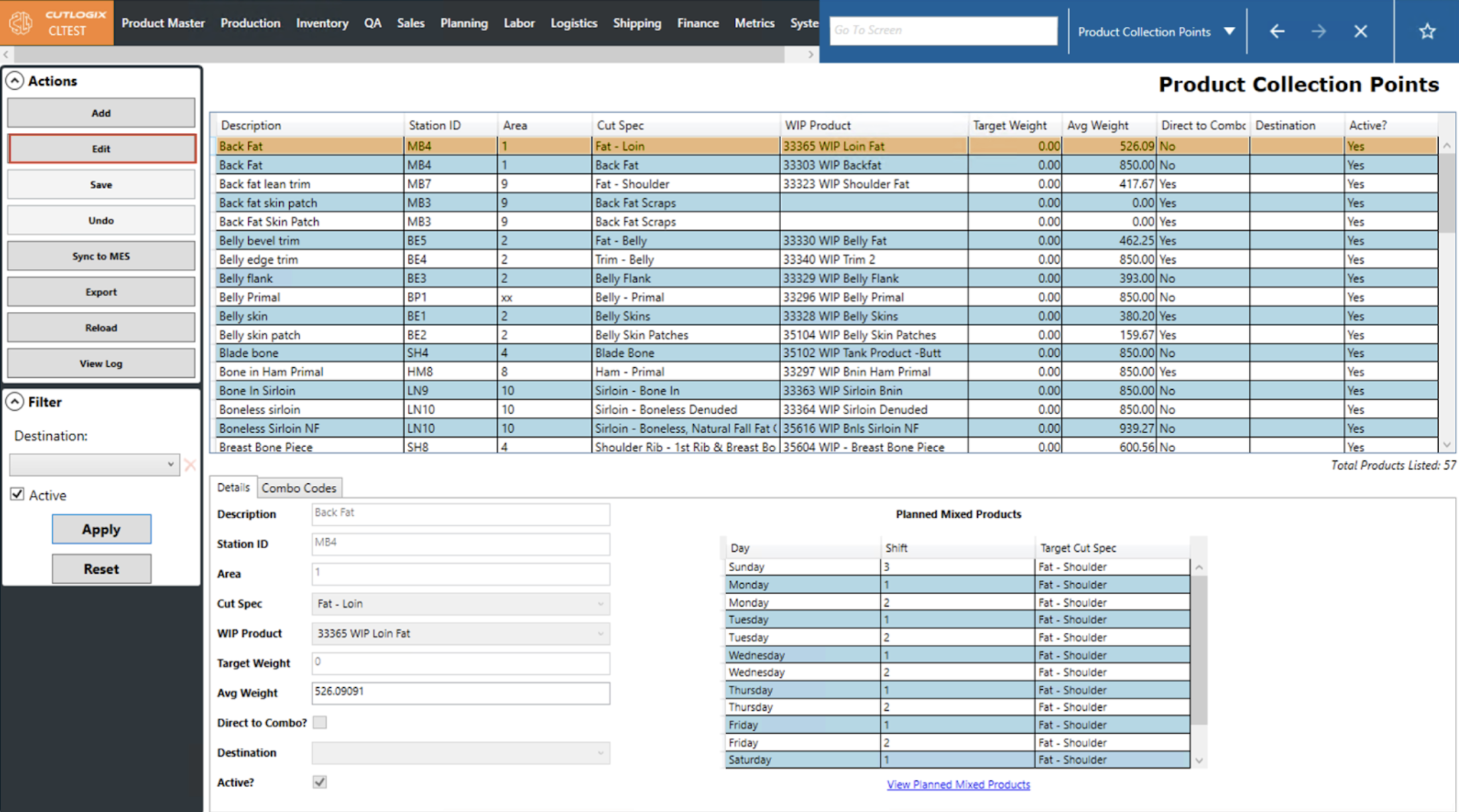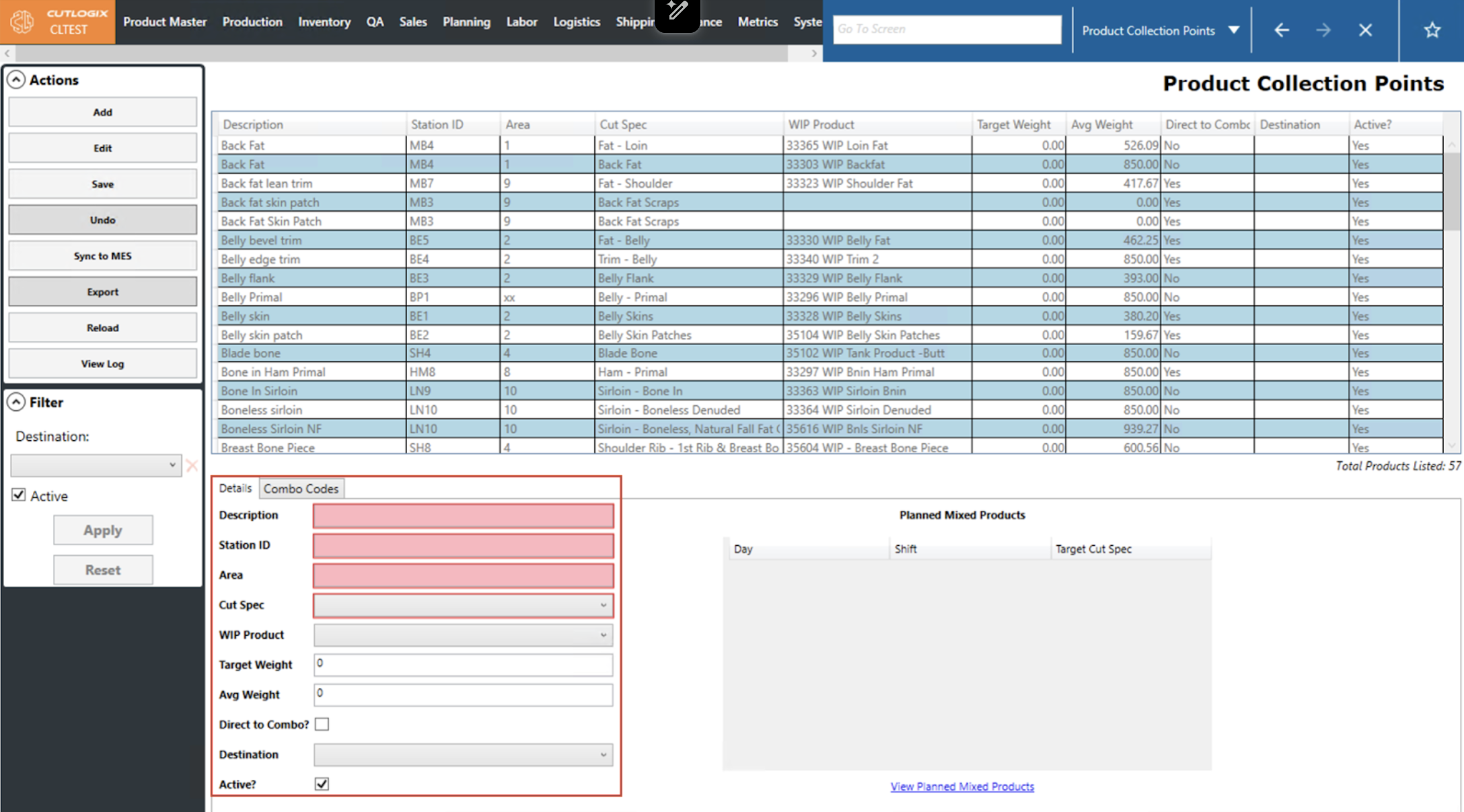 NOTE: When users select a cut spec, its associated Planned Mixed Products will be auto-populated on the right and any associated combo products will be automatically filled out on the Combo Codes tab.