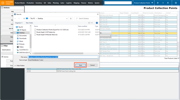 Step 4: Locate the excel file that downloaded (in the location chosen in the previous step) and open it. It will display the product collection point data (same information that is shown on the product collection points screen) for the current day.