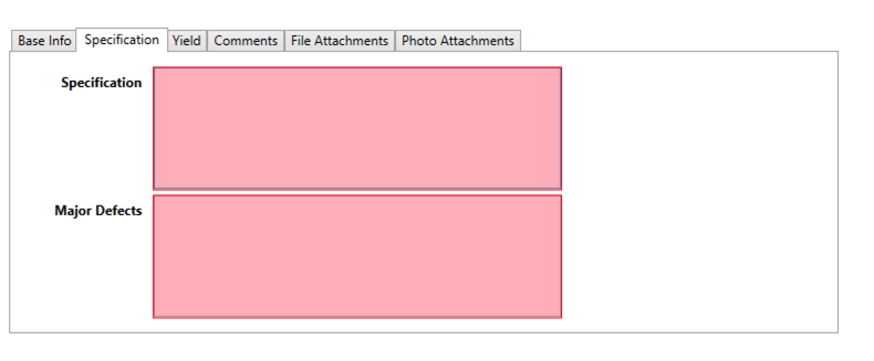 Step 3: The mandatory fields for adding a new cut spec are the red highlighted fields in the base info tab and in the specification tab. Fill out all the required information on the new cut spec.