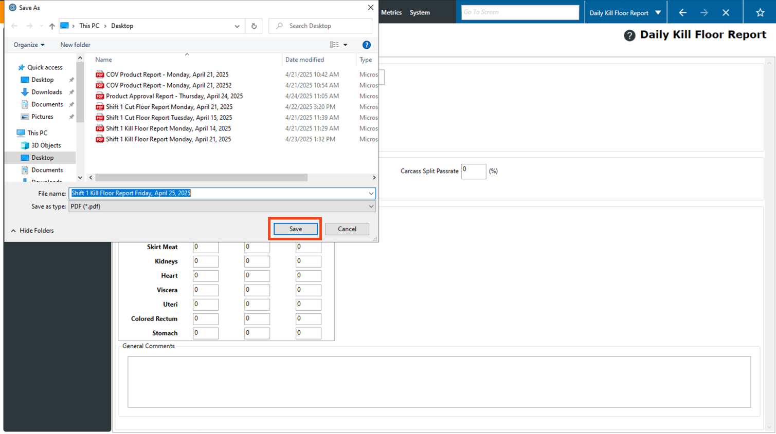 Step 1: Navigate to the "Daily Kill Report" page (Under the Production menu → Kill Floor → Daily Kill Report)