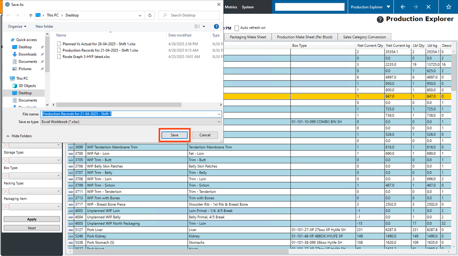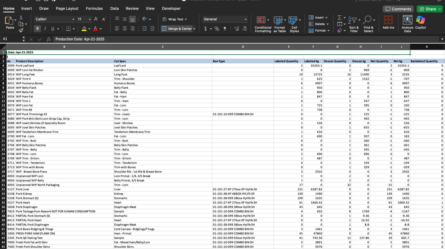 • Quantity Target: The production line on which this product is produced (Shoulder, Butt, Ham, etc.).