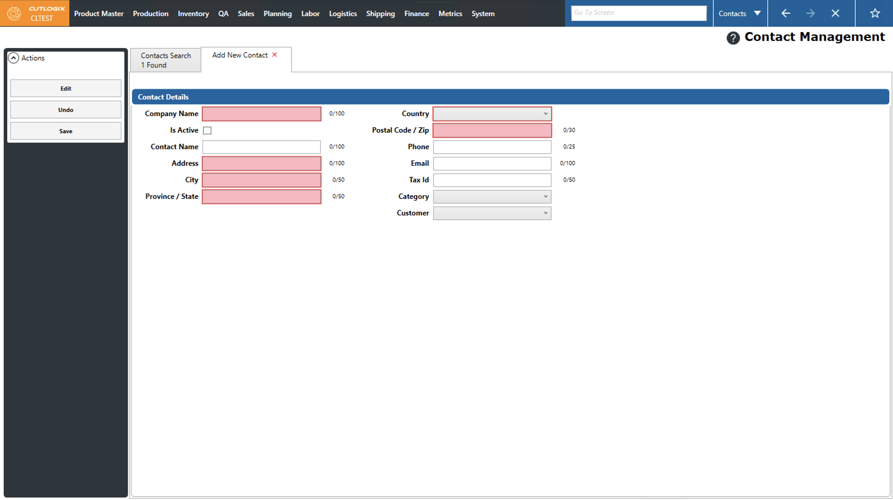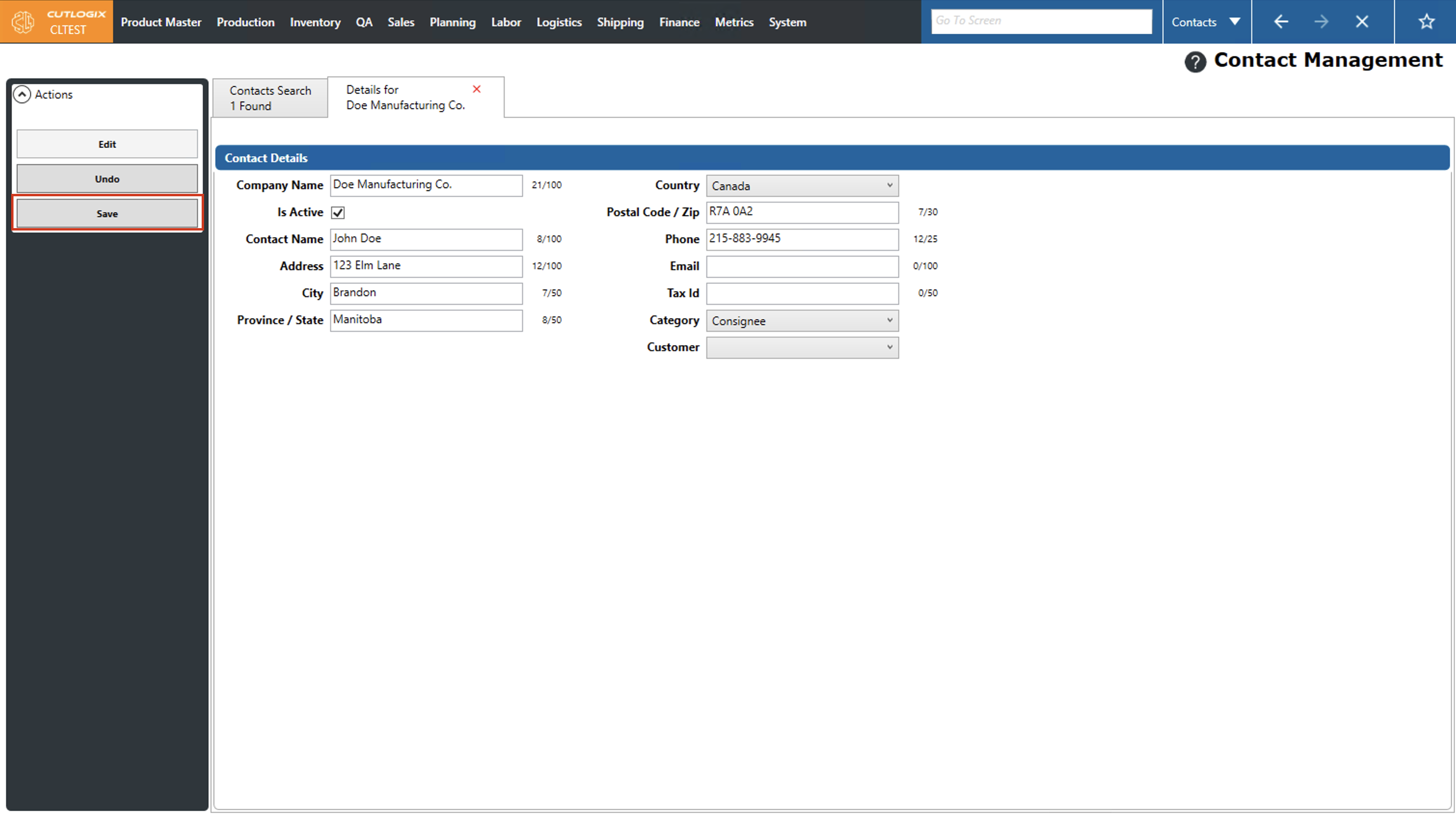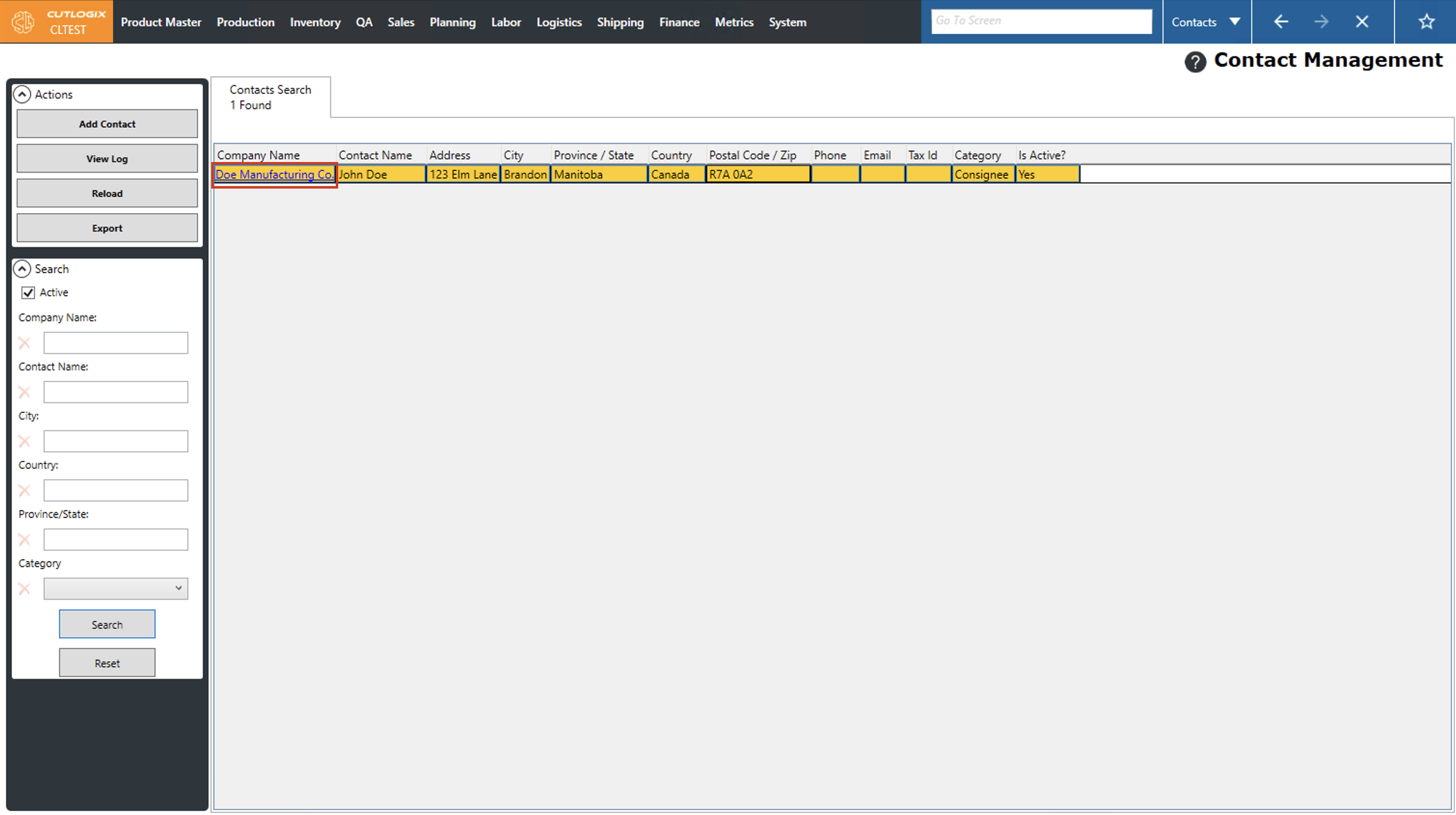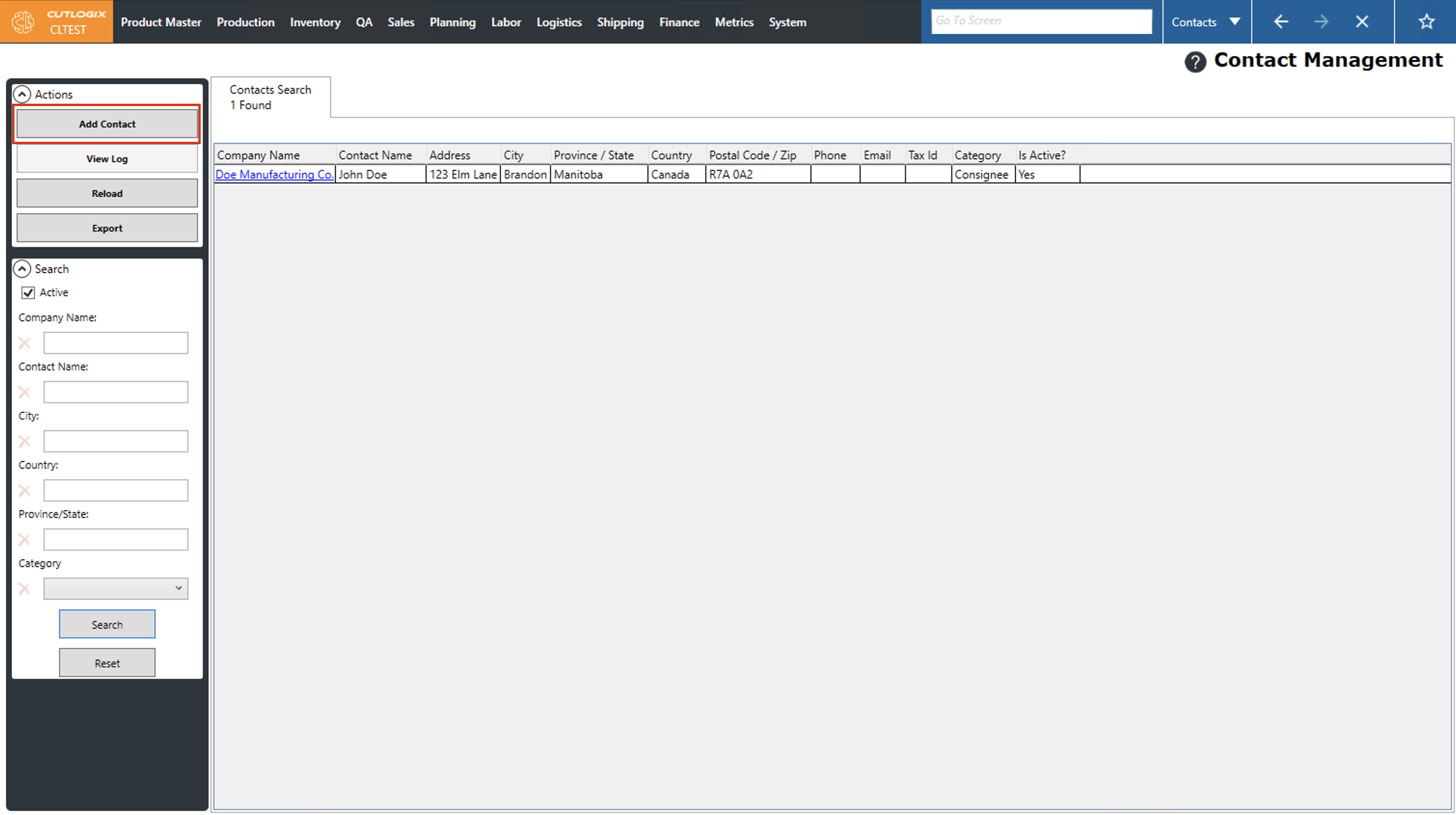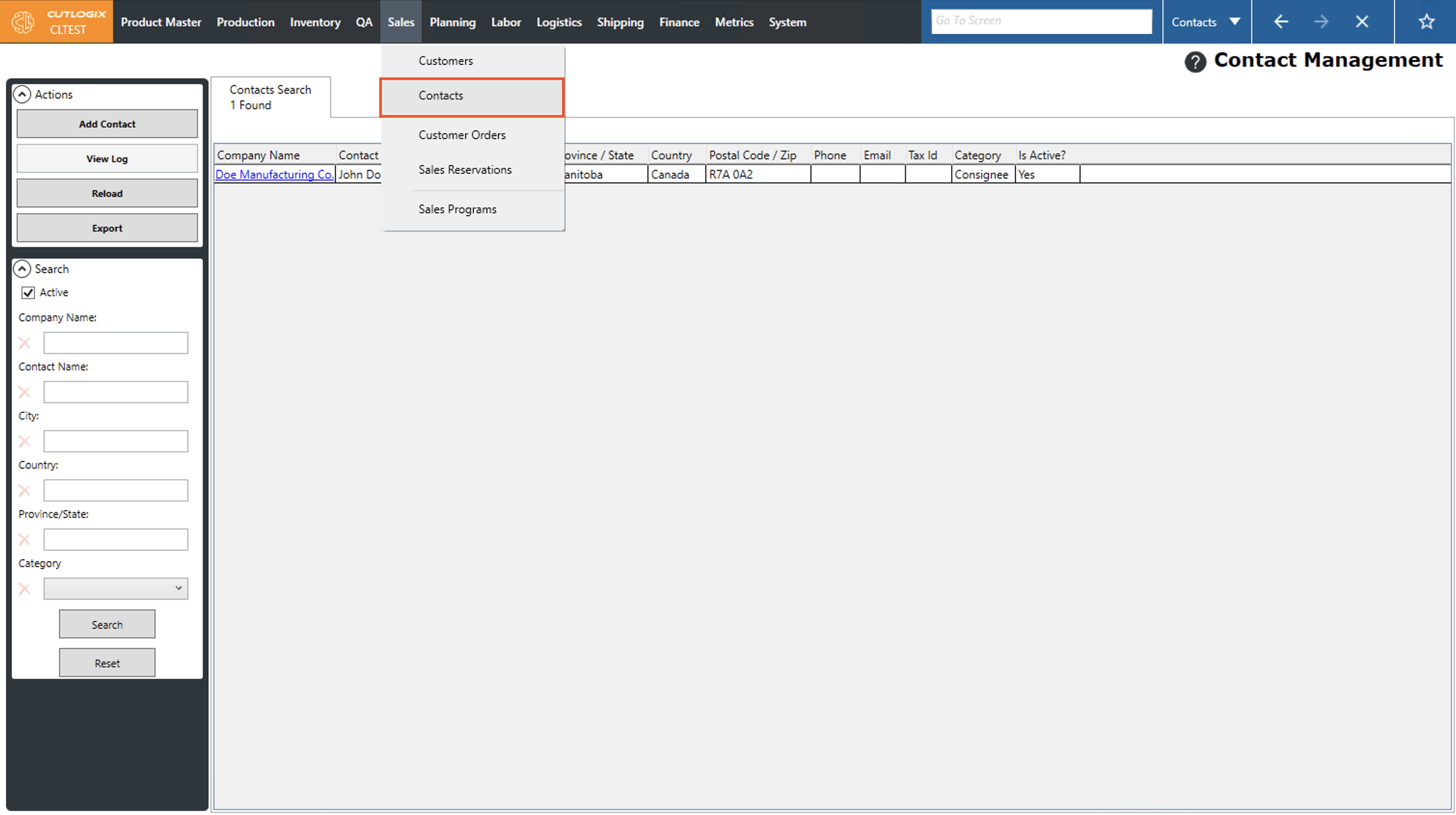 Note: Customers and contacts are not interchangeable. A customer is who will get added to a customer order. They are configured with an official address, payment terms and are who get invoiced for orders, but are not necessarily where orders will be shipped to. Contacts can be linked to customers (customers can have multiple contacts), they often represent different locations within a company where orders would be shipped to or contact people for the company. Contacts can be set as consignees, shippers, delivery addresses, a party to be notified, point of crossing or an inspection facility and will be available for selection on customer orders and sales reservations.