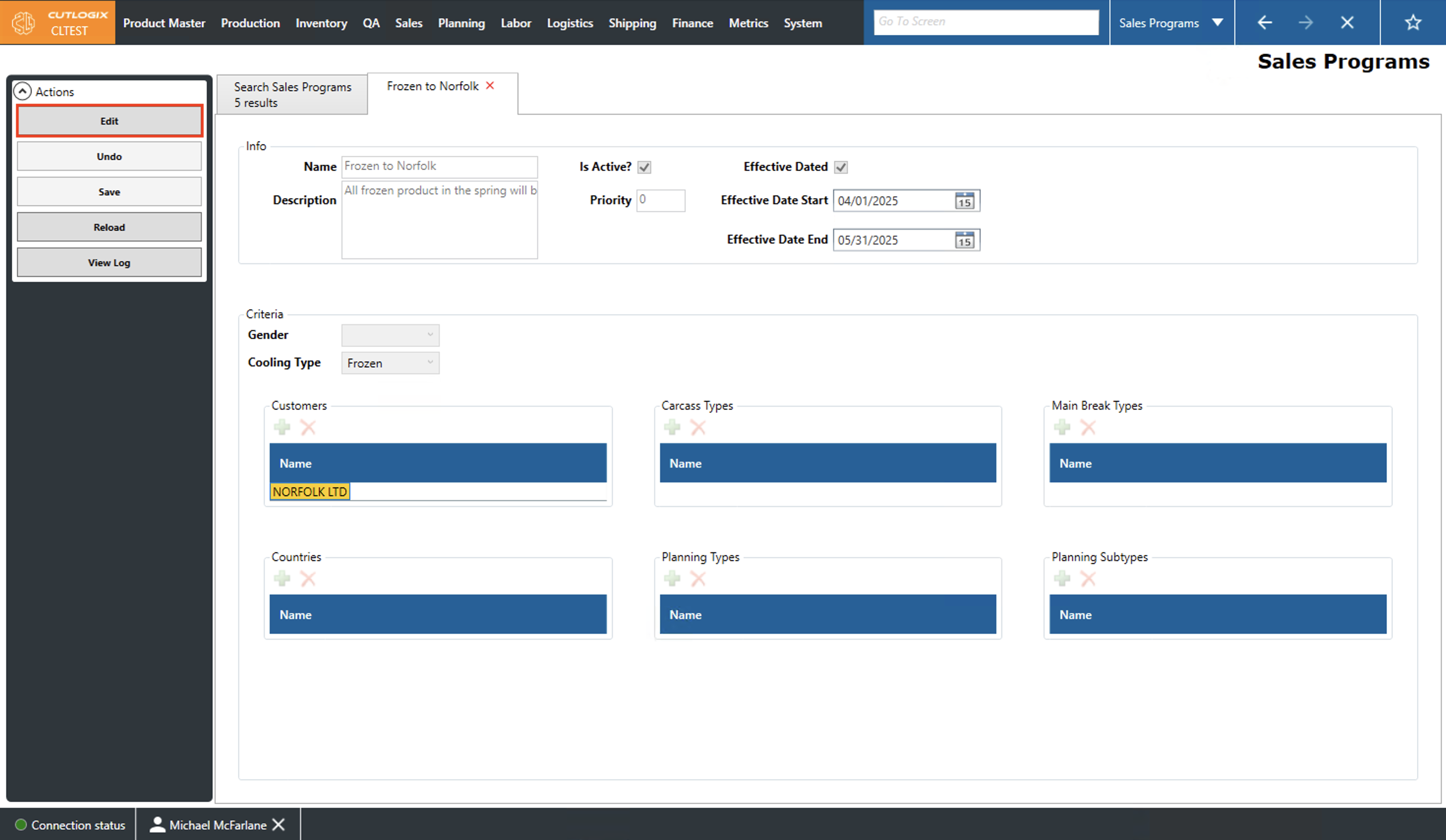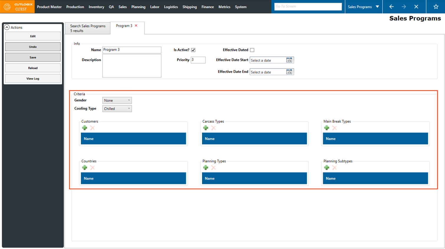 • Planning Types: The planning types, as defined in the planning module, that are included in this sales program. Planning type typically refers to a type of primal (ham, belly, shoulder, etc).