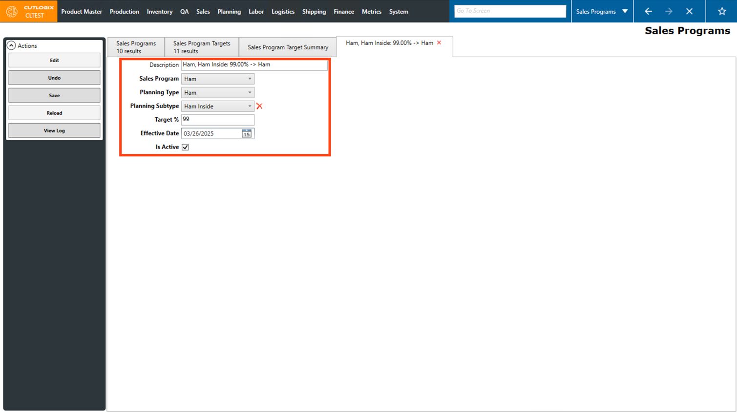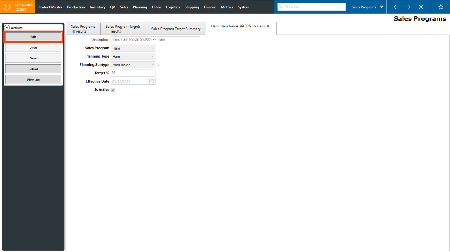 Step 6: The fields will now be editable. Make any necessary changes to the selected sales program target here.